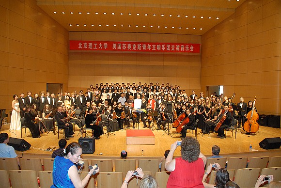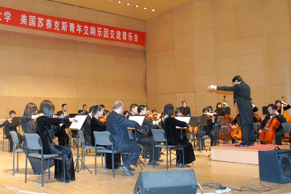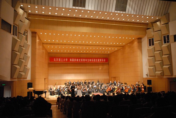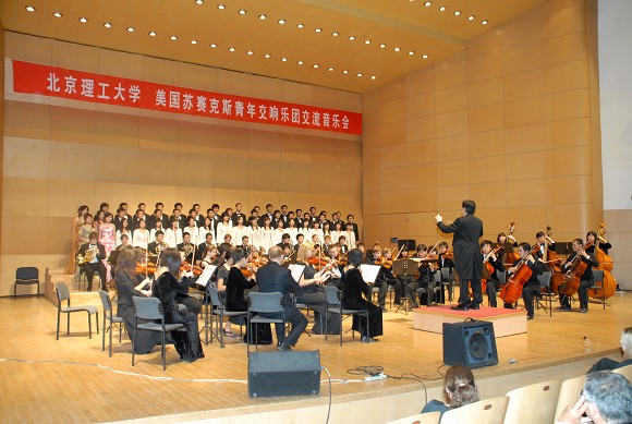 2007年7月1日下午三点,美国新泽西州苏塞克斯青年交响乐团与ob真人竞猜大学生艺术团交流演出在国图音乐厅举行。