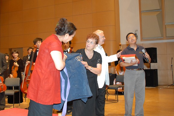 演出结束后,苏塞克斯青年交响乐团指挥道恩·泰迪斯科和他的夫人与我校艺术教育中心艺术总监贺春华老师代表双方交换了礼物。泰迪斯克夫人对我校艺术团的演出给予了很高的评价。贺春华老师也激动地说:“音乐是全世界共同的语言,在音乐的国界里,两国的朋友交流了思想和感情,欢迎苏塞克斯青年交响乐团的朋友们能够再次来到ob真人竞猜。”