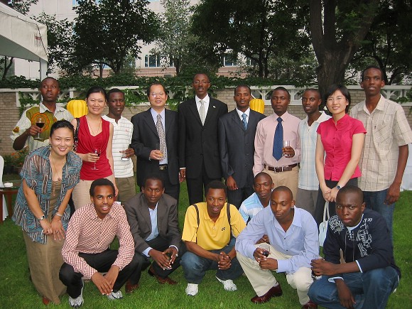 7月3日下午,我校应卢旺达大使馆邀请参加在大使馆举行的卢旺达独立日、解放日庆祝晚宴,国际交流合作处王庆林处长、高珊老师及留学生中心刘伟老师前往参加,并与卢旺达驻华大使本杰明鲁班加先生及在我校学习的卢旺达留学生合影留念。王庆林处长代表学校向大使赠送了纪念品,鲁班加大使对我校对留学生项目给予的大力支持和协助表示衷心的感谢,并勉励留学生们认真学习。