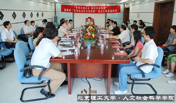 7月19日下午4点,我校人文社会科学学院与北京市宣武区人民政府天桥街道办事处联合开展的“宣武区‘大学生社区主任助理’试点工作启动仪式”在天桥街道办事处会议室举行。