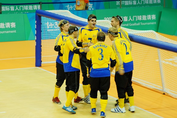 在16日下午17:00点与瑞典队争夺本次邀请赛冠军的比赛中,中国队不畏强手,超强发挥,以8:3战胜北欧劲旅瑞典队,荣获“好运北京”2007国际盲人门球邀请赛冠军!!