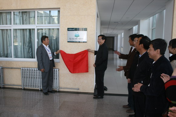 李和章副校长和仲顺安院长共同为电工电子教学实验中心揭牌。