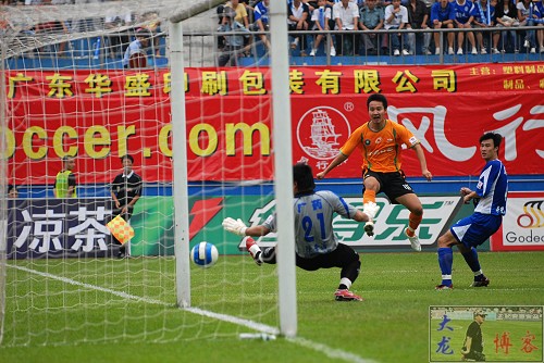 第32分钟,徐亮中路利用个人技术连续晃开2名防守球员,随即与拉米雷斯打出2过1配合,最后徐亮左脚一记劲射稍稍越门而出。第35分钟,拉米雷斯禁区边控球回做,杰弗森右脚顺势横拨,后上的高明第一时间右脚劲射,但皮球被对方门将孙程挡出底线。2分钟后,广州医药队角球开出,李岩中路头球攻门被孙程扑出,随即孙程反应迅速将球没收。