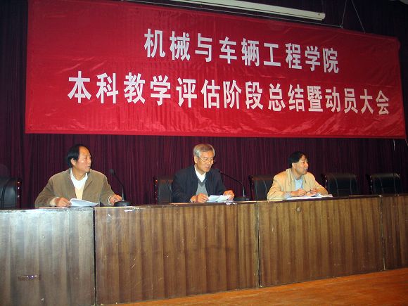 2007年10月26日上午,机械与车辆工程学院全院教职工本科教学评估阶段总结及动员大会在七号楼报告厅举行,学院领导、各系主任、各支部书记、专业建设责任人等全院教职员工参加大会。副院长丁洪生主持会议。