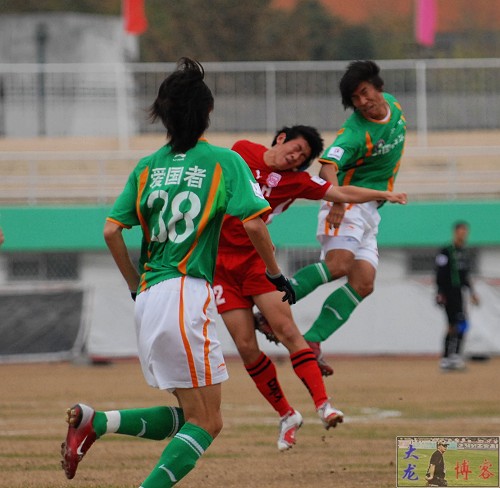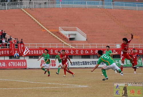 北京宏登队有些着急,加强了逼抢,第19分钟,北京宏登获得角球,开球弧度很大,落点被爱国者队员得到,并将球大脚开出。第21分钟,宏登队又获得定位球,球吊入禁区,被爱国者后卫5号康思贝顶出,将球破坏掉;第24分钟,宏登队加强了反击攻势,但在爱国者的牢牢防守下,似乎没有什么很好的办法。第27分钟,爱国者39号刘在熏带球,宏登队28号陆鸣犯规,爱国者获得任意球,大脚开出却出现偏差;