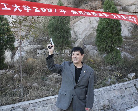 党委副书记、工会主席侯光明同志为比赛鸣枪发令并与广大教职工一道,登上了凤凰岭顶峰,俯瞰北京的新面貌。