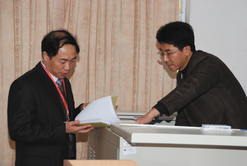 专家组成员、华南理工大学教务处处长、教授、博士生导师曾志新听完两节课后,到教务处和实验室设备处进行走访,并参加了教学管理干部座谈会,就特色专业建设和精品课程与大家进行了交流。
