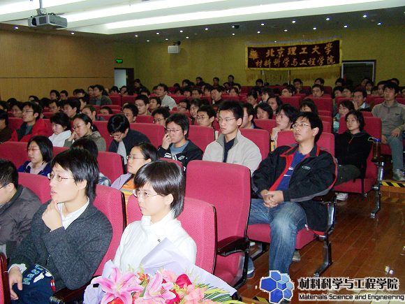 欢迎会后,颜鸣皋院士关于“航空材料技术发展与展望”学术报告会在图书馆报告厅进行。副校长李和章、材料学院院务会全体成员出席了报告会。颜院士从前言、航空材料的发展现状、我国航空材料的发展历程和现状、航空材料技术发展的几点建议等四个方面进行了深入浅出的论述,获得到场师生的阵阵掌声。