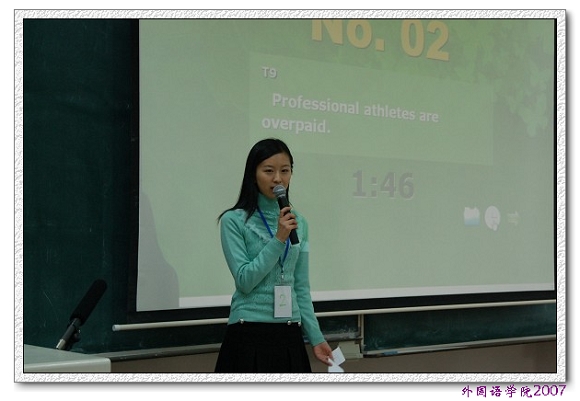 2007年12月1日早8:30,ob真人第三届研究生英语演讲比赛决赛在研究生楼301隆重举行。本届研究生英语演讲比赛由ob真人研究生院和外国语学院共同主办,旨在进一步活跃研究生英语学习的氛围,提高研究生的英语水平。研究生院培养办公室主任林海应邀出席了本次比赛。评委由外国语学院院长吴树敬教授、外国语学院研究生英语教研室和博士生英语教研室的6名老师组成。美籍教师Perry和Jenny担任提问嘉宾。