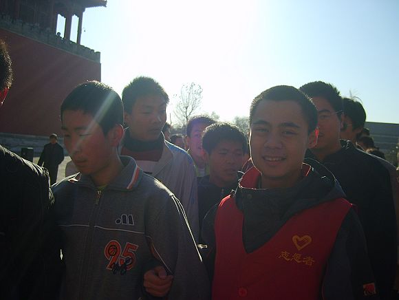 12月3日,理学院青年志愿者协会组织志愿者们,引导张成盲人学校的70多名学生参观了故宫。冬日寒风刺骨,却阻止不了志愿者们“关爱他人,服务社会”的决心。首先志愿者们赶在盲校师生之前到达故宫,并迅速做好了接站等准备工作,顺利的将70余名盲校师生由车站引导到故宫。随后志愿者们分为五大组,每人负责引导两位盲校学生,开始了一次不同寻常的“参观”。