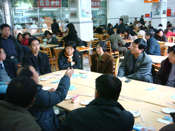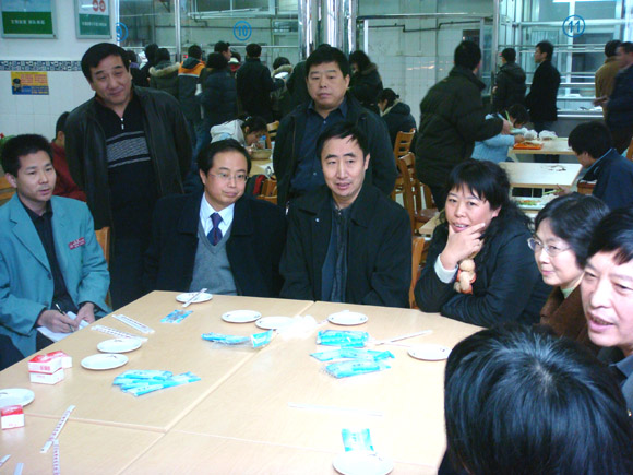 2007年12月4日中午,我校党委副书记、教代会主席团常设主席侯光明、教代会主席团常设秘书长蔡本睿率教代会主席团成员,在教工食堂召开现场会,检查指导工作。