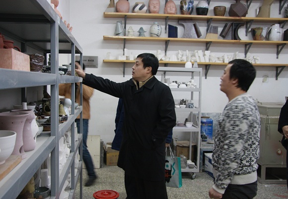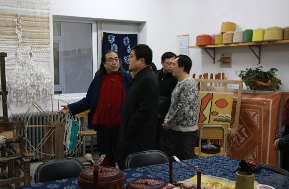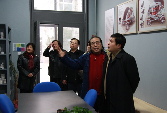 胡海岩校长参观漆画工艺实验室,胡海岩校长还参观了设计艺术学院综合实验室、工业设计系、传统工艺试验基地。