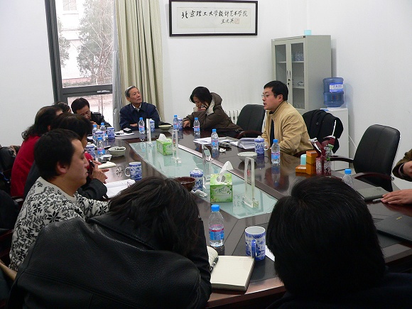 张乃仁院长向胡海岩校长详细地介绍了设计艺术学院的发展历史、学科设置,认真阐述了学院办学思想和管理特色,总结汇报了设计教育办学经验和教训,并展望未来提出学院近期发展建设规划。分党委书记李莲进行了补充发言。胡校长充分肯定了设计艺术院近年来的工作成果,并对学院的“再提高工程”和人性化管理等办学思想给予了赞许。胡海岩校长详细了解了设计艺术学院生源情况、与会教师对研究生教学学制的看法、还饶有兴趣地同教师们就设计艺术学与美术学、设计史与美术史的关系等专业问题交换了意见。