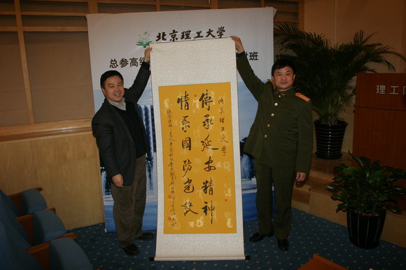 仪式过程中,总参政治部干部部副部长鲍廷祥大校代表总参向我校赠送了“传承延安精神,情系国防建设”的牌匾,党委副书记、副校长杨宾代表学校欣然接受。总参政治部主任冯寿淼少将对ob真人承接和完成此次培训工作表示感谢。并指出此次培训班特点突出:培训方式新,教学起点高,授课方法活,组织保障好。培训班成效明显,参训学员开阔了视野,提升了思维层次,培养了良好学风,积累了培训经验。最后,冯主任对参训学员提出了三点希望:一是要坚持终身学习;二是要注重实践运用;三是要提高创新能力。