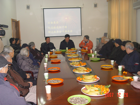 后勤服务金卡推出两年来,为广大金卡使用对象提供优质、高效的后勤服务,受到了金卡用户的普遍好评。为使更多的离退休同志享受到此项服务,2007年12月26日上午,在老干部处会议室,后勤集团总务后勤部与老干部处共同举办向高龄退休老同志赠送服务金卡座谈会。参加会议的有:校党委副书记、工会主席侯光明,离退休干部党委书记杨惠萍,老干部处处长刘川,后勤集团党委书记巫后新,总务后勤部副主任宋希博,综合管理办公室副主任吴坤明,接待服务中心主任刘跃进、副主任苏荣德、赵小贺,修建服务中心主任刘树琛,物业管理服务中心主任杨明君以及部分高龄退休老同志代表。