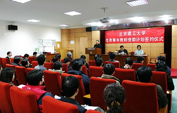 2008年1月3日上午,我校2007年度“优秀青年教师资助计划”及择优二次资助签约仪式在逸夫楼2层报告厅隆重举行. 胡海岩校长,杨树兴副校长,人事处于倩处长,各学院领导,2005-2007年度 “优秀青年教师资助计划”入选教师、2007年度择优二次资助入选教师参加了会议。