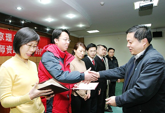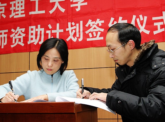人事处于倩处长与入选的青年教师代表签订了《优秀青年教师资助计划资助合同书》。