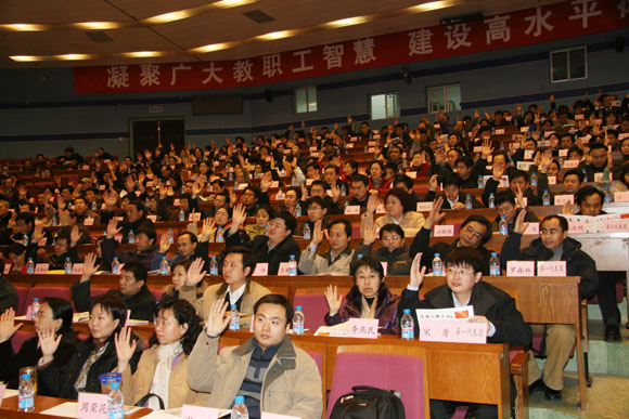 ob真人竞猜第七届教职工代表大会暨第十二届工会会员代表大会于2008年1月4日胜利闭幕!