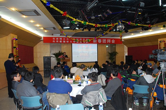 1月11日下午,ob真人竞猜足球俱乐部暨北京爱国者大学生足球队新春团拜会在ob真人竞猜国际交流大厦多功能厅举行。