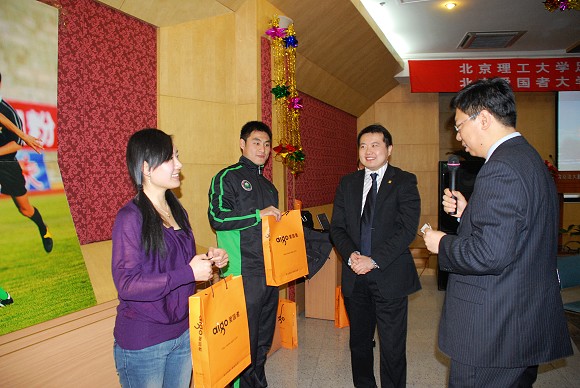 团拜会上,还进行了抽奖活动,由华旗爱国者提供了丰厚的奖品。媒体记者还就所关心的问题向学校领导和足球队总教练金志扬、主教练曹限东、队员们进行了提问,并进行了深入采访。