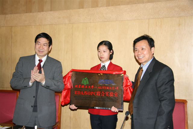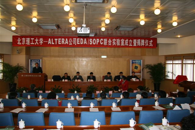 2008年1月12日上午,EDA/SOPC联合实验室成立暨揭牌仪式在国际交流中心报告厅隆重举行,Altera公司大学项目经理徐平波先生,校纪委书记杨蜀康、实验室设备处处长李振键、教务处副处长闫达远、计算机科学技术学院院长付梦印、书记王树武出席了揭牌仪式。