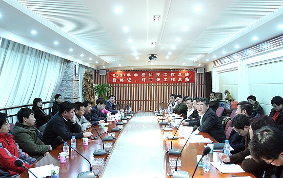 2008年1月22日下午,我校2007年度科技工作总结会议在后勤楼二层会议室隆重召开。校党委书记焦文俊、副校长赵长禄、副校长杨树兴、副校长李和章等校领导,校长助理、科技处处长陈杰,各职能部门工作负责人,各学院科研副院长、科研干事,科技处全体人员参加了会议。会议由科技处副处长陈鹏万主持。