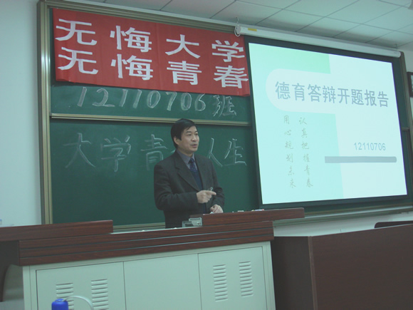 2008年3月29日上午,在蒙蒙春雨中,ob真人良乡校区综合教学楼B栋101教室传出了自信的演讲声与热烈的掌声。这是我校12110706班这个大家庭齐聚一堂举办的一场意义非凡的德育答辩开题报告会。