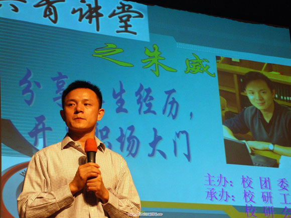 2008年3月17日晚7点,著名的成功人士朱威先生应邀来到我校,作为“共青讲堂”大型名家系列讲座第二十三位嘉宾,为同学们带来了他自己关于人生和工作方面的一些经验。