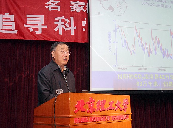 秦院士长期从事冰冻圈与全球变化研究,多次参加、主持南、北极、青藏高原和中国西部地区的科学考察和研究。1989年7月28日,秦大河和五位国外科学家一起,开始了史无前例的横穿南极大陆科考活动,历时 220天,徒步行进6000公里,他的勇敢、毅力和高度的民族责任感,赢得了全世界的尊敬。2007年12月10日, IPCC因在全球气候变化方面的研究获得诺贝尔和平奖。作为IPCC主要成员,秦大河再次为中国赢得了荣誉。秦院士报告会上重点阐述了IPCC成立以来四次评估报告主要结论;气候变化对自然和经济社会的影响;IPCC的工作介绍和获得诺贝尔和平奖经历;以及全球和中国冰冻圈的变化。秦院士以全球气候变化的最新研究成果为主要内容,向大家深入浅出地介绍了气候变化的基本原因,现在世界各国的研究进展,未来气候变化等方面的内容。