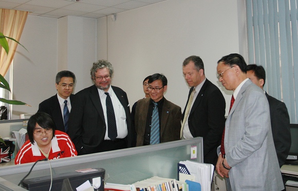 访问期间,Gudmundson校长一行还参观了我校与爱立信数字通信技术研究中心。研究中心主任匡镜明教授与Gudmundson校长进行了亲切会晤。双方回顾了2007年匡镜明教授对瑞典皇家理工大学的访问以及双方近几年的合作。在研究中心,Gudmundson校长认真了解了我校与爱立信公司的合作历程和取得的丰硕成果,并观看了研究项目的现场演示。