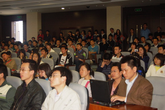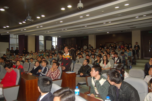 整个报告厅里座无虚席,有许多来晚的同学还坚持站着听完了整场讲座。
