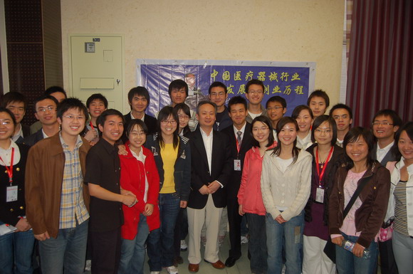 随后,徐董事长又回答了预防保健行业产业价值,您认为商机怎样?民族医疗事业,医疗器械公司应承担怎样的责任?如何获得创业的第一桶金?等十余个问题,徐董事长的回答赢得了同学们的阵阵掌声。