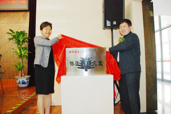 西双版纳傣族自治州发改委副主任武静和校党委副书记、副校长杨宾共同为傣医药研究室揭牌。