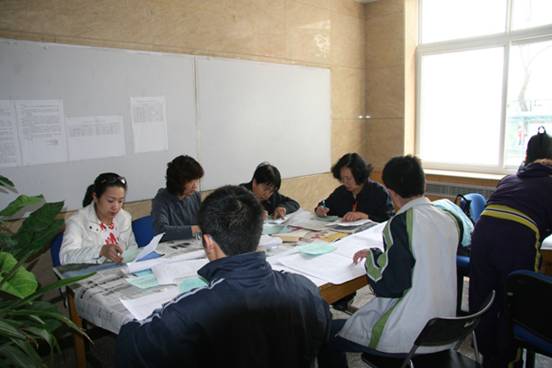 工作人员统计成绩紧张忙碌