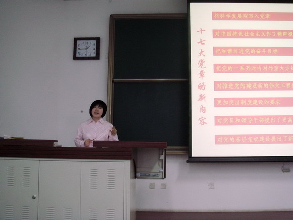 第一讲校党校张爱秀老师结合十七大为同学们解读党章的相关内容。