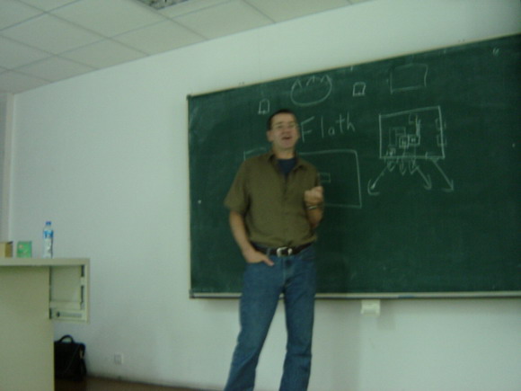 当日下午1点半,在研究生楼104教室Flath教授以“Kongmiao in Modern China ”(近代中国的孔庙)为题给人文学院中国近现代史专业的研究生、选修“中国近现代史专题研究”课的外专业研究生及历史教研室的教师讲了他的研究心得。他的演讲以孔庙为主线,揭示在封建社会历代统治者出于巩固其统治的需要,无一不尊孔,这种情况一直延续到国民党统治时期,孔子的后裔在经济上受益颇多;新中国成立后的相当长一段时期内,对孔子的评价又围绕政治斗争而展开;改革开放后,山东曲阜孔庙成为著名的旅游景点;上个世纪90年代以后,随着中国经济的腾飞,以孔子为代表的中国儒家文化日益受到世界的关注。
