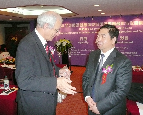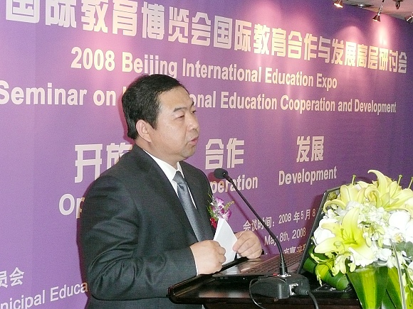 “2008北京国际教育博览会国际教育合作与发展高层研讨会”于2008年5月8日在北京长城饭店举行,我校副校长杨树兴应邀出席会议并发表演讲。研讨会由北京市教育委员会主办。北京部分区县主管外事有关领导、高校及中小学校主管国际交流与合作的相关领导、部分外省市教育厅有关领导、驻华使馆有关人员等出席会议。