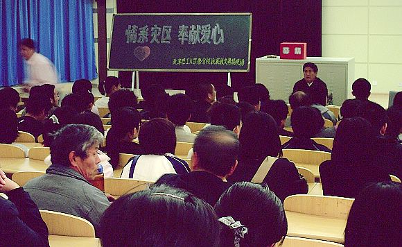 下午4点,分校党支部专门召开了以“情系灾区,奉献爱心,在当前抗震救灾中我们应做些什么?”为主题的动员会。我校全体教职员工、学生党员、校团委、学生会及各班班长、团支书等一百余人参加了会议。会后,师生员工踊跃捐款,场面感人,展现了分校全体教职工和同学们情系灾区,奉献爱心的情感。