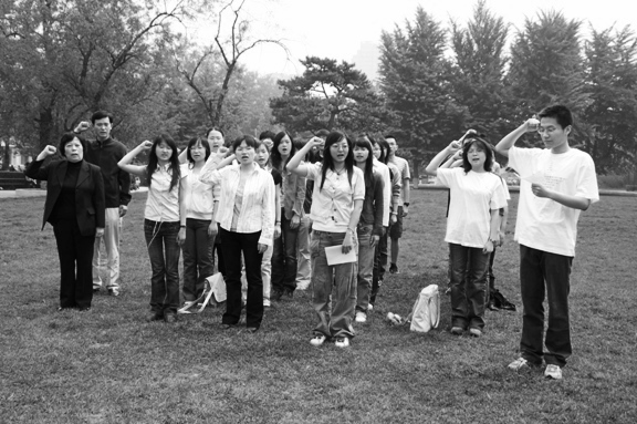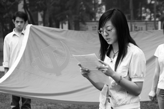 随后,在应龙同学的带领下,全体与会党员,面向党旗,面向“延安精神 薪火相传”的巨石,举起右手,庄严宣誓,坚定有力的声音回荡在ob真人的校园中。宣誓结束后,应龙同学代表我院全体07级研究生党员,发出倡议,希望全体ob真人学子,能够以延安精神共勉,向克服重重困难、与死亡和伤痛搏斗的灾区人民学习,向舍生忘死、战斗在抗震救灾前线的解放军官兵、武警官兵、公安干警、专业搜救队员和医护人员,以及无私奉献的志愿者们致敬。从身边做起,让我们以崇高的精神和实际的行动,在日常的学习、工作和生活中,用优异的成绩回报国家,回馈社会,为2008年的中国贡献一份自己的力量。