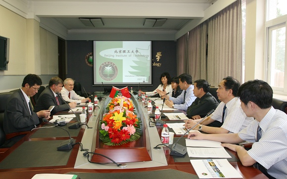 2008年5月23日,白俄罗斯国立大学校长瓦·斯特拉热夫(左四)、副校长伏·吉洪诺夫(右四)一行来我校访问。党委书记郭大成在主楼二层会议室会见了来访客人。陪同会见的还有我校教务处处长庞思勤、化工与环境学院院长周智明、科技处副处长史天贵、国际交流合作处副处长汪滢等。