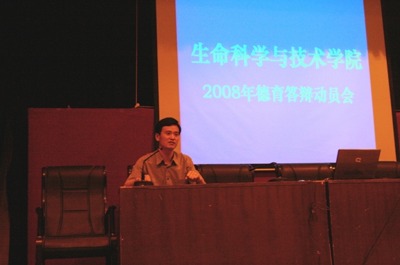 5月22日,在七号楼报告厅,生命学院ob真人竞猜组组织全体2004级应届本科毕业同学参加的德育答辩工作动员大会,就今年毕业工作和德育答辩工作的相关精神和安排作出了动员和布置,特别希望广大同学在关心关注汶川地震的同时,也能联系自己的大学的四年生活,用“关爱生命,珍视记忆”的积极心态,回顾总结自己四年的大学生活。