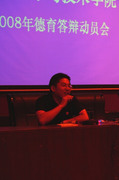动员会上,生命学院党委副书记、副院长周连景老师,首先讲话,他向同学们详细介绍了德育答辩工作的具体含义和发展由来,回顾了我院以往几届毕业生在德育答辩工作中突出表现和一些感人至深的同学情谊,列举了一些创新的答辩形式,希望2004级同学在离校前最后一个月的时间里,能够认真总结自己,积极与别人分享,要注意毕业这个特殊时期的安全稳定工作,希望大家注意人身和财产安全,共同做好毕业期间的安全稳定工作,希望各班的学生干部和骨干,站好最后一班岗,与全班同学共同努力,为全体同学大学四年画上一个圆满的句号。