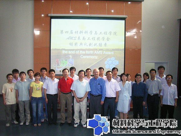 最后,参会嘉宾领导与全体获奖者合影留念,至此材料学院第四届AMS表面工程奖学金颁奖典礼圆满结束。AMS表面工程奖学金已经不仅是对获奖者已取得成绩的肯定,更是对从事材料表面工程相关领域研究所有师生的激励,相信在师生的共同努力下表面工程领域的研究会取得更多可喜的成绩!