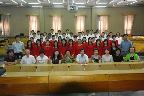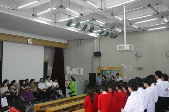 我校艺教中心艺术总监贺春华向北京教委评审团介绍了我校学生合唱团的成长情况。贺春华老师作为教委艺术教育评估专家组成员参加了北大、北师大、中国农大、北工大等校的艺术教育检查与评审工作。北京教委艺术教育评审团专家对我校学生合唱团的音乐会进行了现场点评。