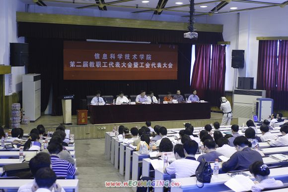 2008年5月23日下午,信息科学技术学院第二届教职工代表大会暨工会代表大会在七号教学楼一层报告厅举行。
