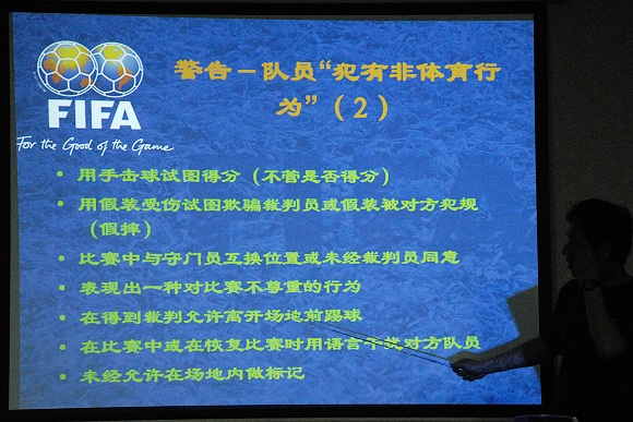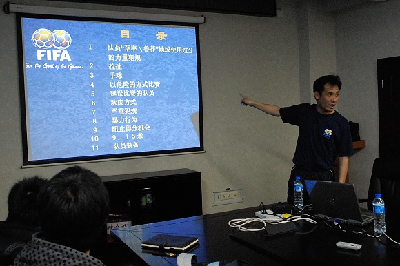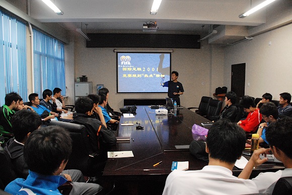 日前,为更好地学习国际足联2008“热点”精神,学校足球队特地请来著名国际级裁判谭海老师,结合国际足联新规定和国内联赛执法规则进行了详细解释。