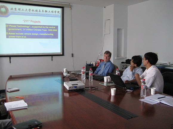 2008年6月6日,美国密歇根大学机械学院Zheng-dong Ma和Gregory Mark Hulbert教授受我院电动车辆工程技术中心副主任林程教授的邀请,在机械与车辆工程学院电动车辆工程技术中心开展学术交流与合作访问。林程教授主持学术交流会议,电动车中心及我院其他实验室的近30名师生参加了学术交流活动。
