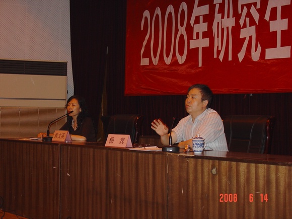 党委副书记、副校长杨宾作题为“奥运背景下的研究生工作”的专题报告。杨书记分析了中国举办奥运会深远意义;中国举办奥运会所面临的机遇与挑战是什么等问题,并针对研究生怎样应对这样复杂的局面提出了要求:1 坚定信念,中国和平崛起的趋势不可阻挡;2 积极维护稳定大局,努力构建和谐校园;3 展示研究生文明素质,以饱满的人情迎接奥运;4 营造良好的环境氛围。最后杨书记介绍了ob真人奥运场馆筹备情况,表示我校已经做好一切准备,等待奥运会的正式到来。