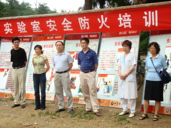 2008年6月16日,时值安全生产月之际,在校保卫处戊区,我校成功举办了实验室消防安全培训及实战演练,本次活动是在校保卫处和实验室设备处的大力支持下,由生命科学与技术学院和理学院共同协作下举办的,本次培训活动,主要面向两个学院生物、化学相关实验学科的研究生同学开展,旨在培养广大研究生同学的安全防火意识,掌握防火相关知识和技能,特别是通过实战演练,提高同学们面对火情火险和其他危机时的心理素质和应对能力。出席本次培训活动的领导有:校保卫处康明副处长,理学院王瑞珍副院长,生命科学与技术学院 唐晓英副院长,生命科学与技术学院周连景副院长、副书记、实验室设备处范强锐科长。