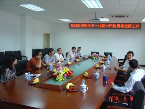 随后,吴院士介绍了自己目前所从事的科研工作,并与仲顺安院长、陶然副院长、龙腾教授、王学田教授、曾涛教授等老师就各学科专业问题进行了讨论。雷达所所长龙腾教授介绍了目前雷达所正在开展的一些科研工作,主要包括高速实时信号处理、新体制雷达系统与信息处理以及航天信息的实时处理等科研工作。另外,龙腾教授对电子所给予雷达所科研工作的支持表示了感谢。据了解,雷达所的老师在此次汶川地震中积极配合电子所工作,圆满完成了“抗震救灾遥测飞行任务组”的遥测任务。最后,吕院长邀请吴院士经常回母校指导相关学科的学科建设和科研工作。